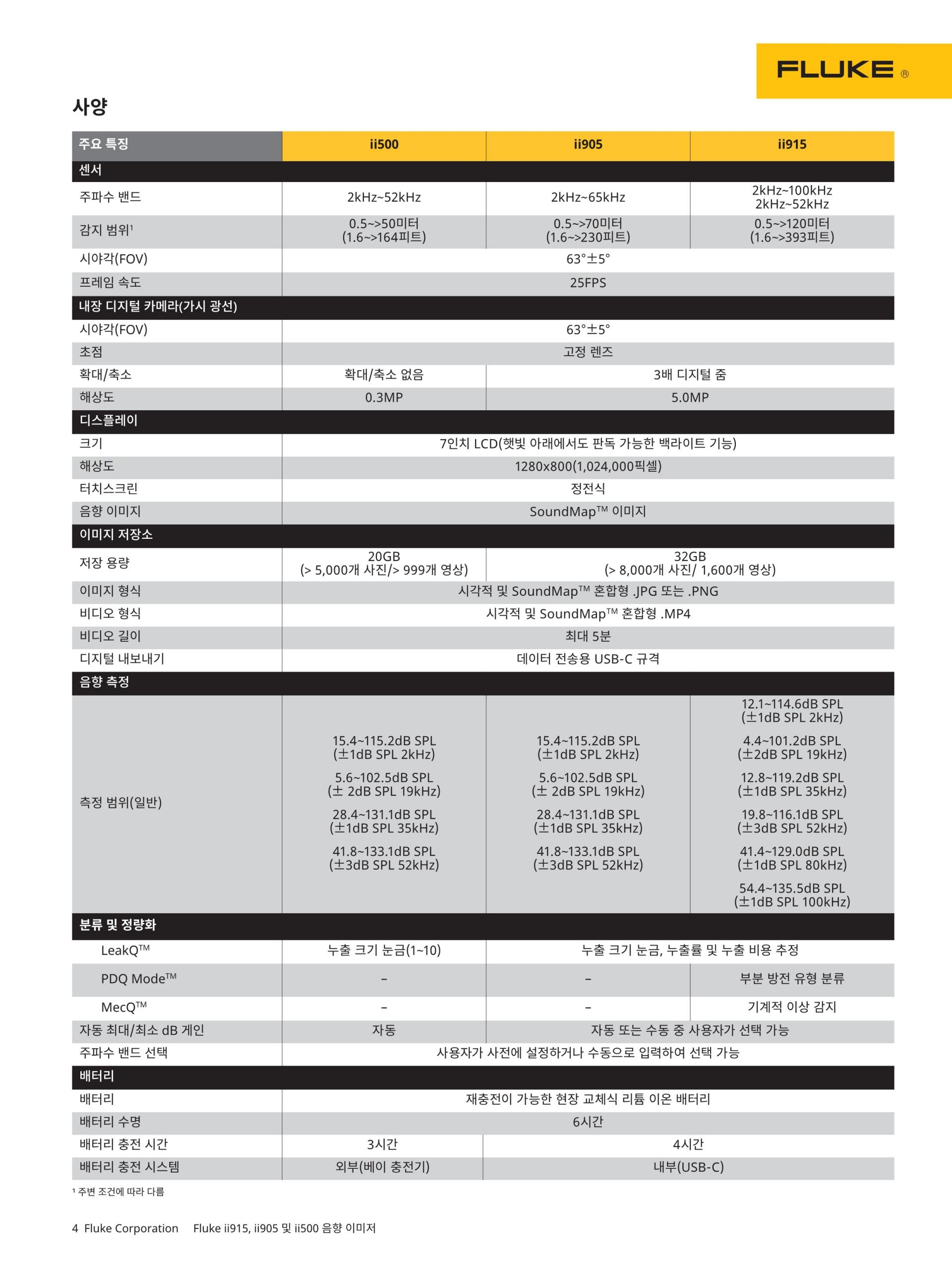 - SoundMap™ 중첩: 7인치 LCD 터치스크린의 실화상 화면에 SoundMap™이 중첩되므로 신속하게 누출 위치를 식별할 수 있습니다.