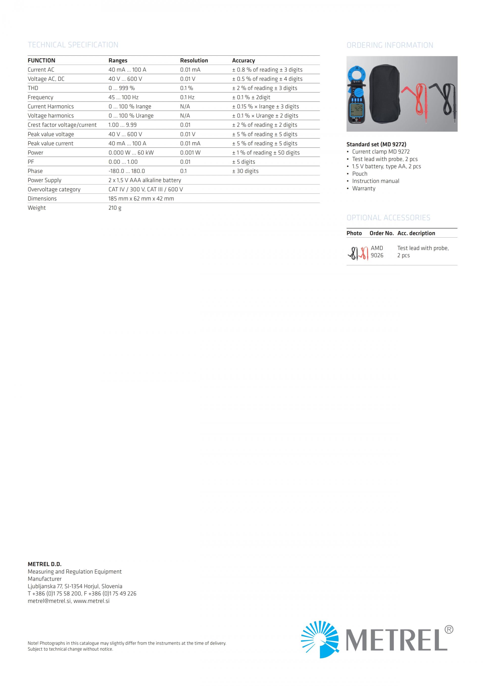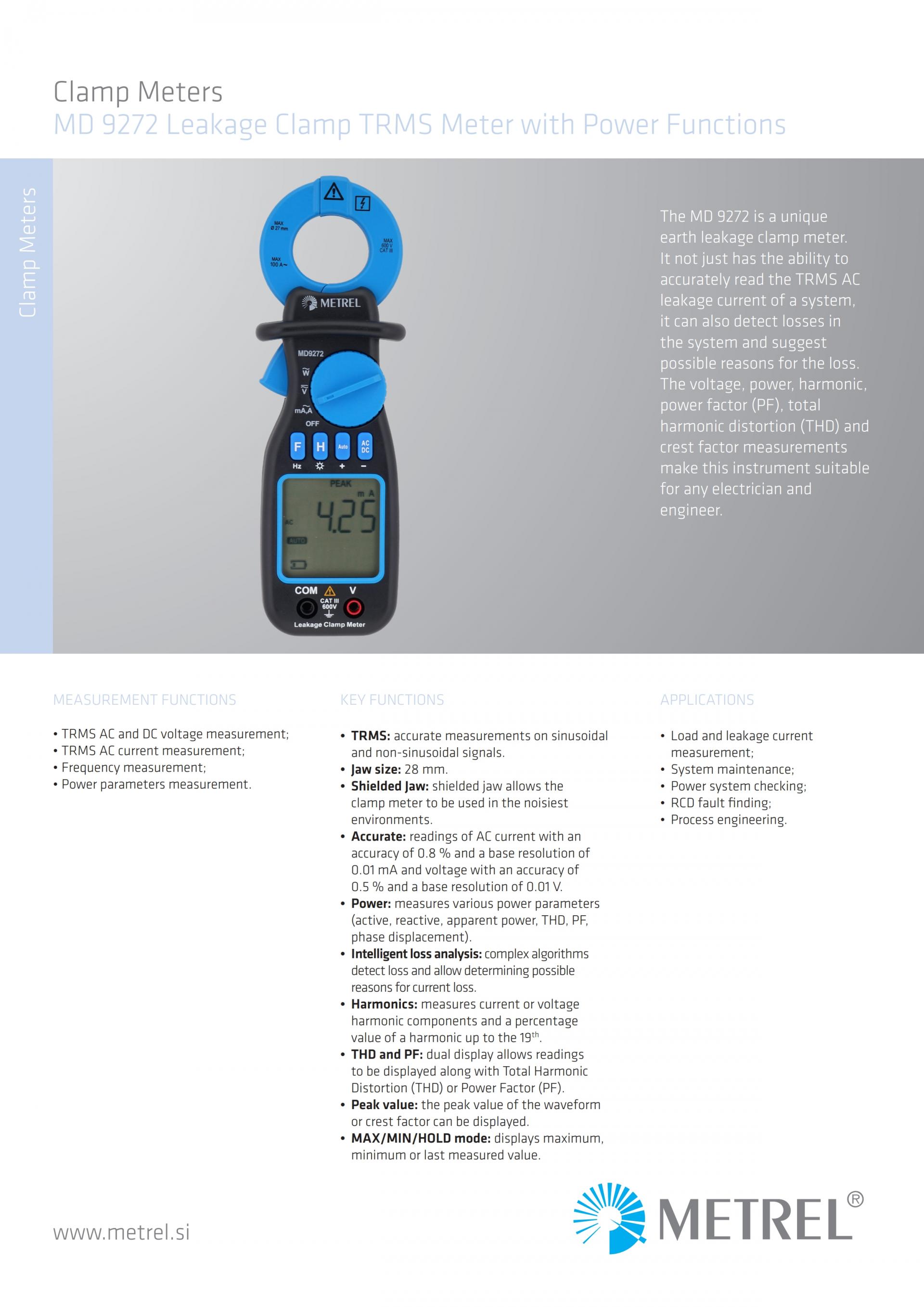 MD-9272 Leakage Clamp TRMS Meter with Power Functions