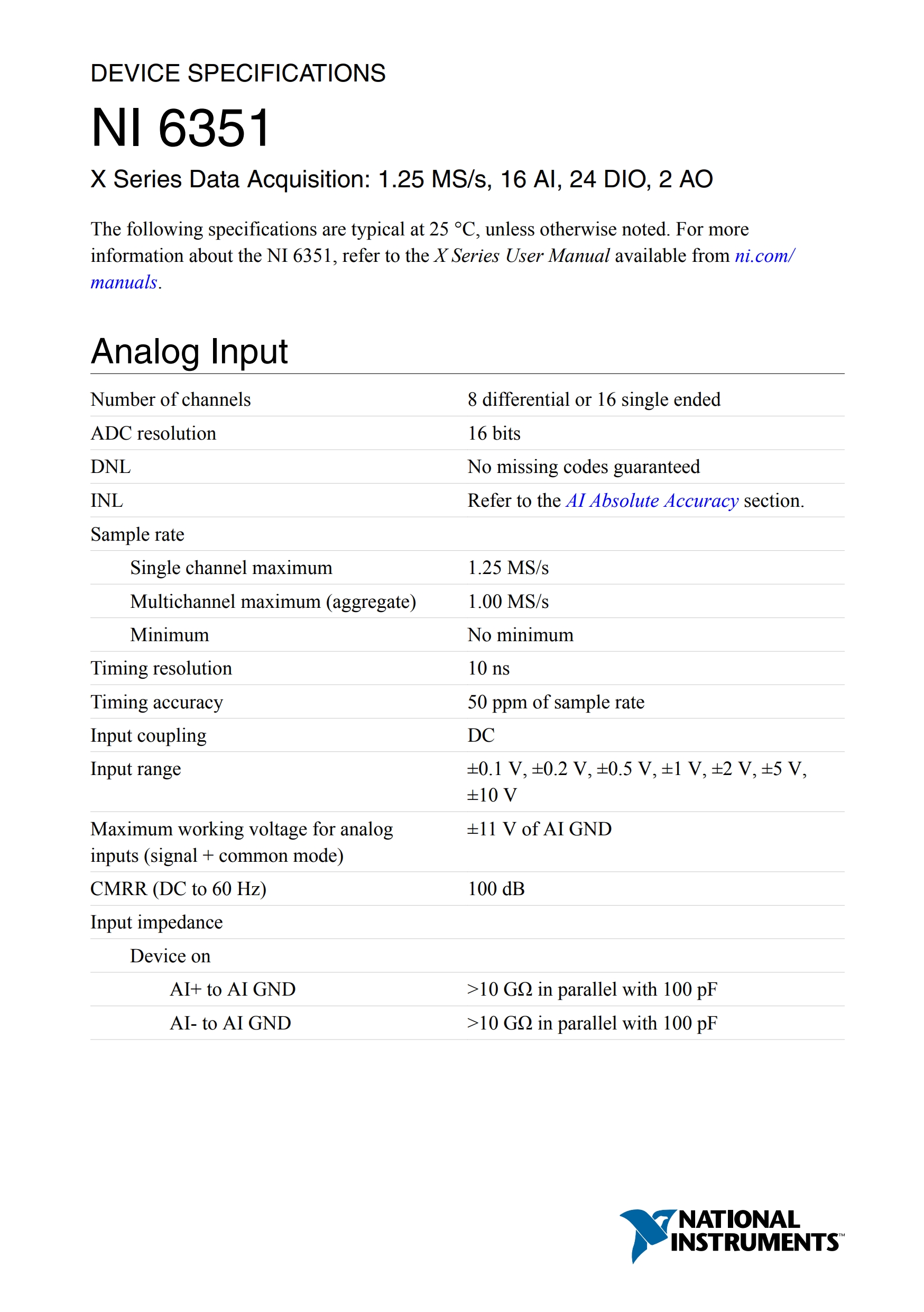 PCIe-6351 X Series Data Acquisition
