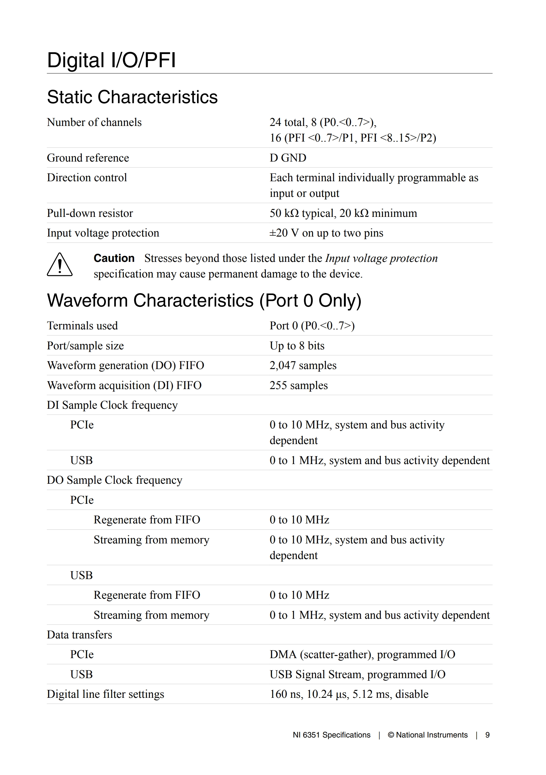 - 아날로그 입력 FIFO 버퍼 크기: 2047 샘플