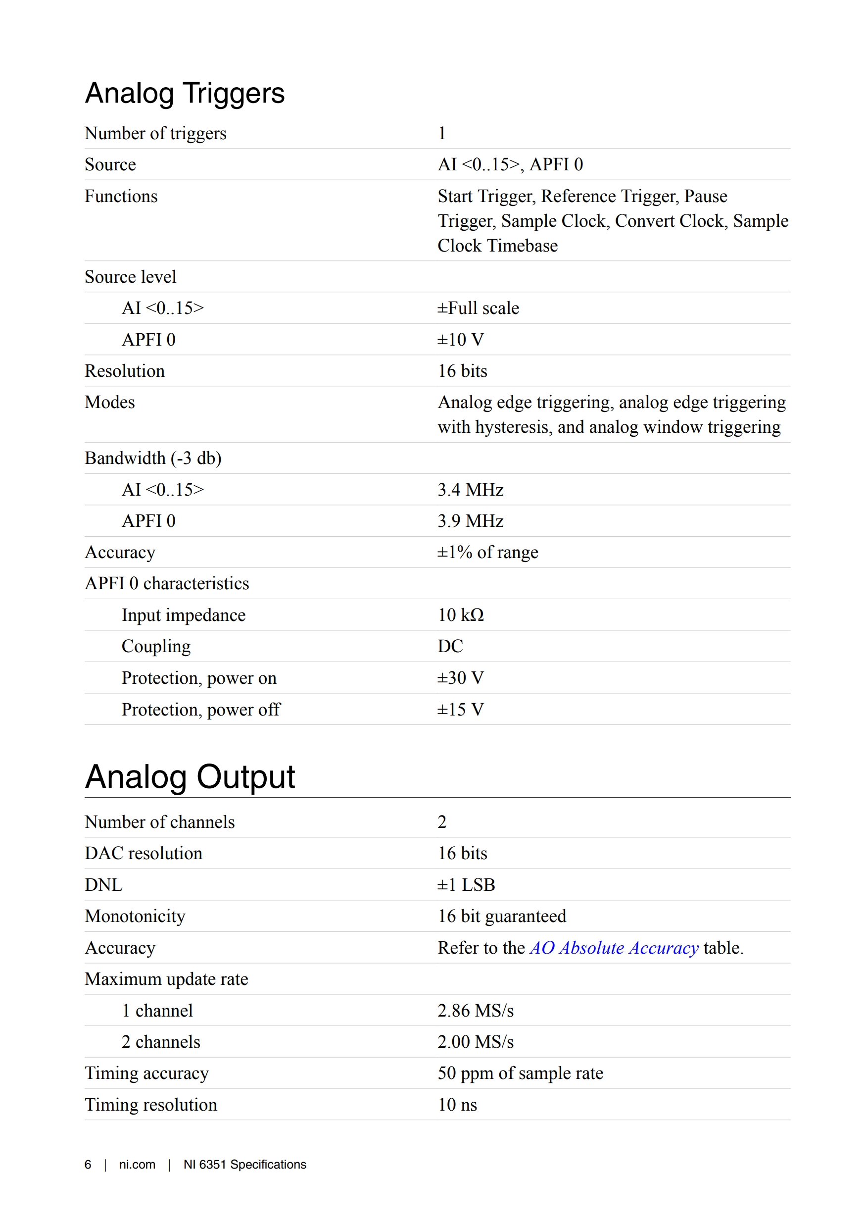 - 아날로그 입력 절대 정확도: 1520 μV