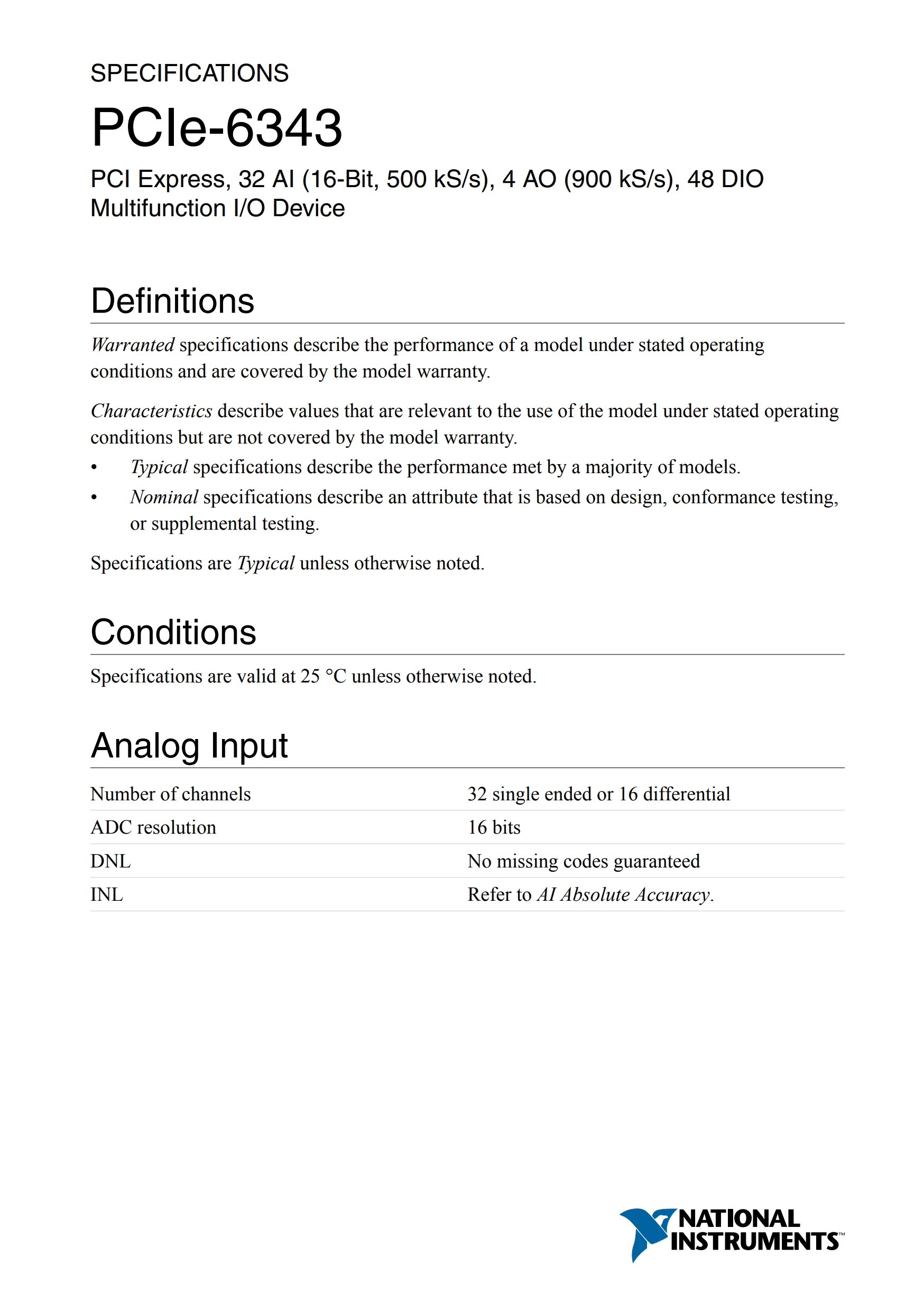 PCIe‑6343은 PWM, 인코더, 주파수, 이벤트 카운팅 등을 위해 아날로그 I/O, 디지털 I/O, 4개의 32 비트 카운터/타이머를 제공합니다. 이 디바이스는 높은 스루풋의 PCI Express 버스와 멀티코어에 최적화된 드라이버 및 어플리케이션 소프트웨어를 활용하는 고성능 기능을 제공합니다. 온보드 NI‑STC3 타이밍 및 동기화 기술은 독립 아날로그 및 디지털 타이밍 엔진과 재트리거 가능한 측정 태스크 등 고급 타이밍 기능을 제공합니다. PCIe‑6343은 기본적인 데이터 로깅부터 제어 및 테스트 자동화까지 다양한 범위의 어플리케이션에 적합합니다. 내장된 NI‑DAQmx 드라이버 및 설정 유틸리티를 사용하면 설정과 측정을 간단하게 수행할 수 있습니다.