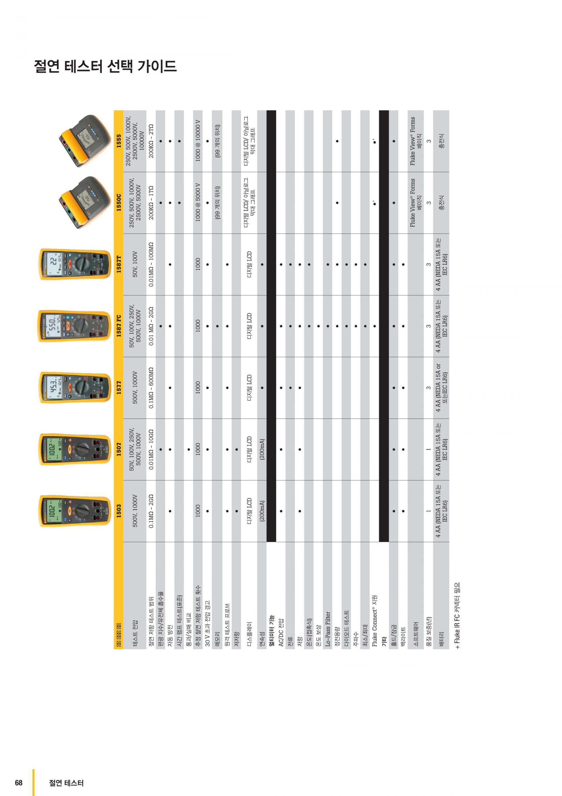 - 분극지수(PI 테스트-Polarization Index)/유전 흡수율(Dielectric Absorption Ratio)의 자동 계산으로 시간과 비용 절약(1507에서만 사용 가능)