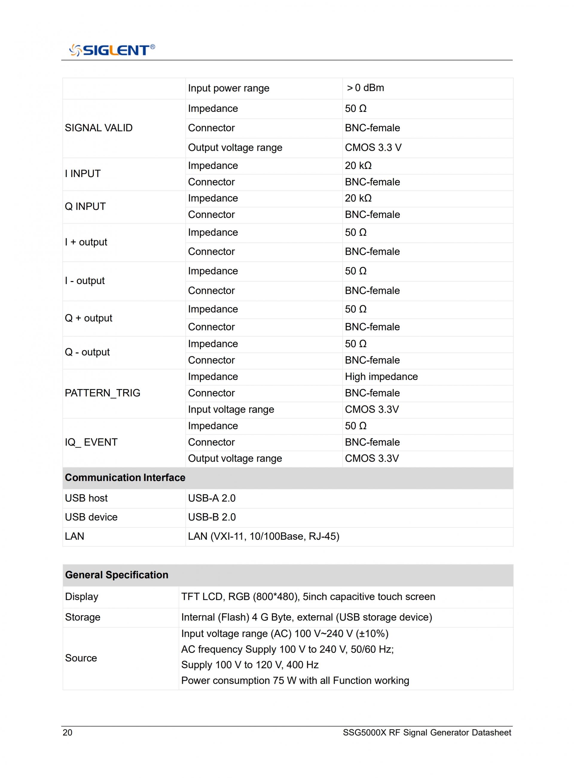 - SSG5000X-V: 아날로그 차동 I/Q 출력