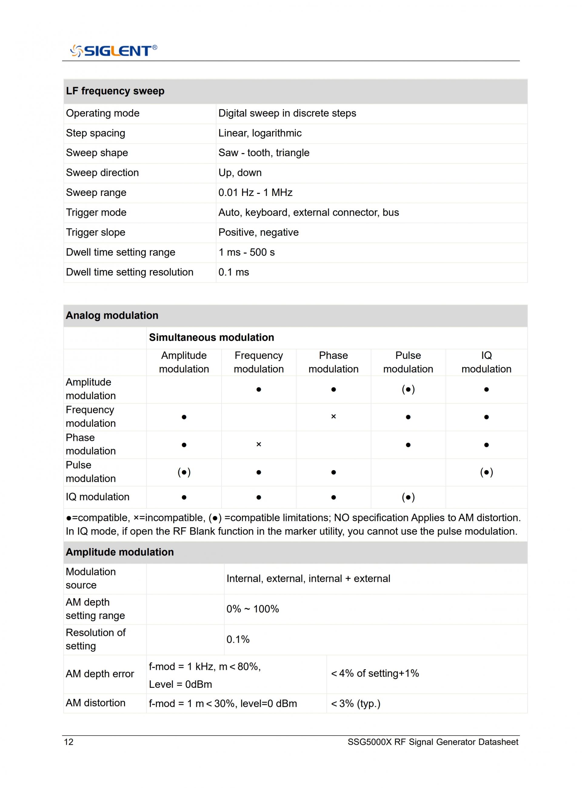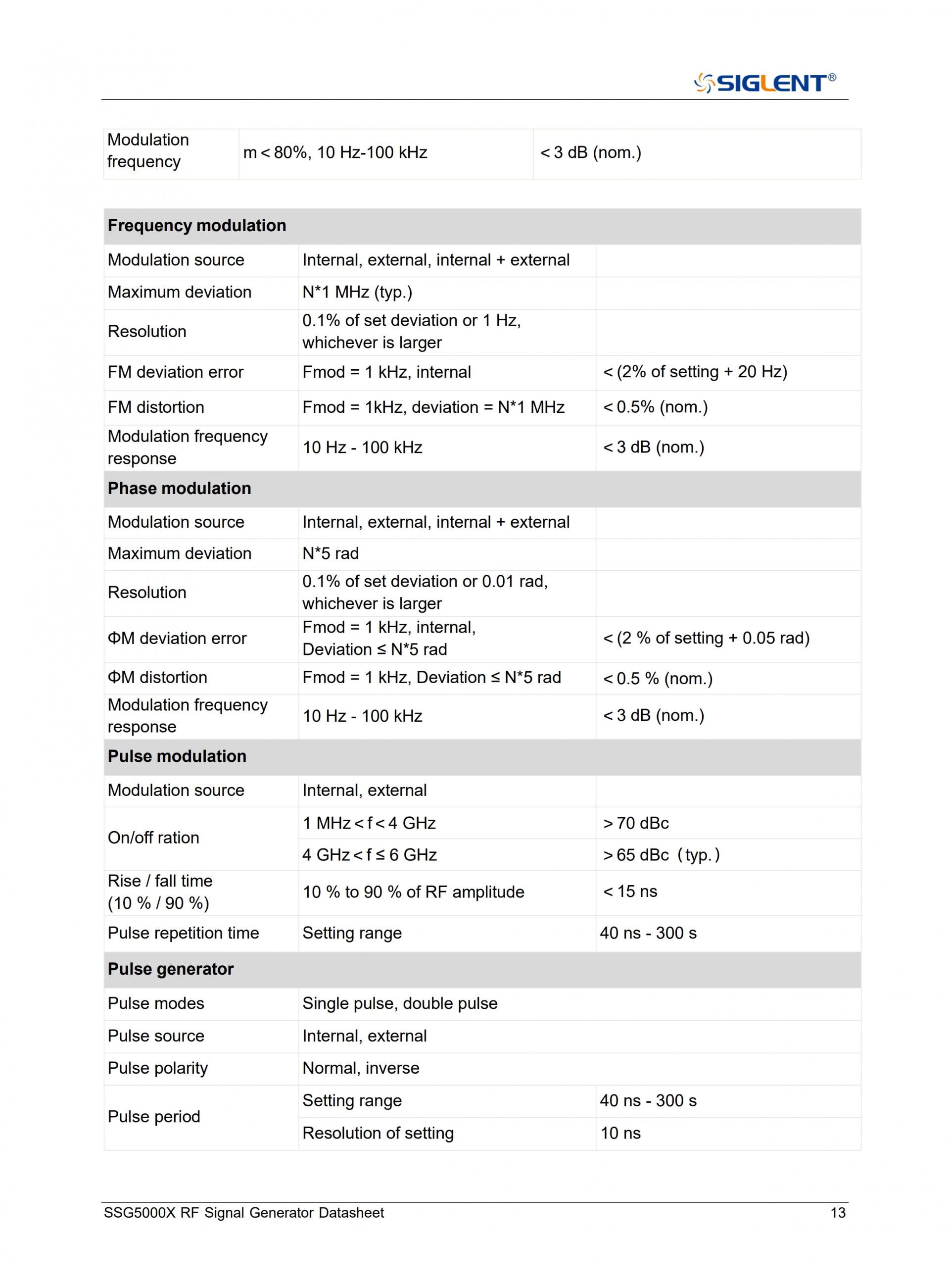 - 내부, 외부 또는 Int+Ext 소스를 사용하여 AM, FM 및 PM 아날로그 변조를 제공합니다.