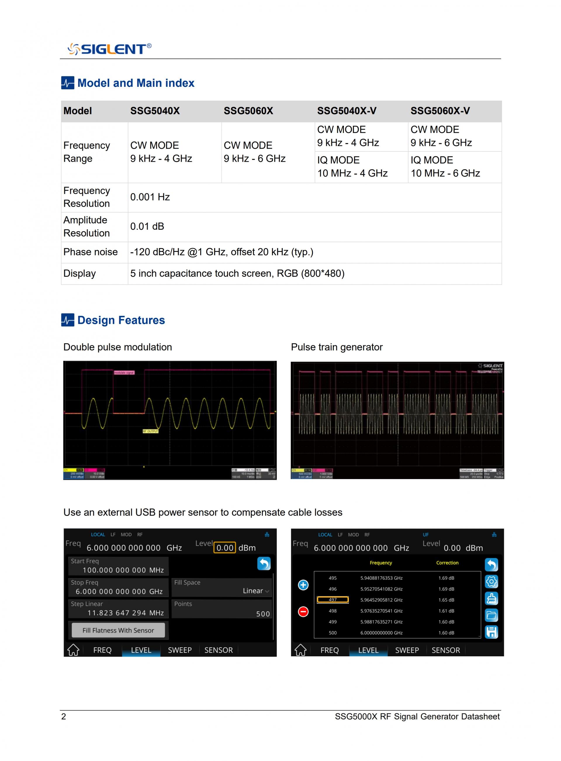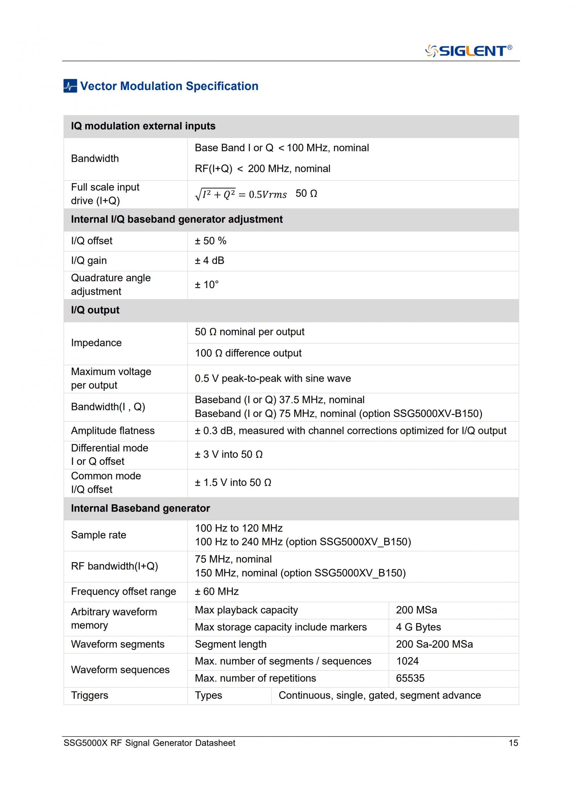 - SSG5000X-V: 완벽한 공장 교정을 통해 150MHz 변조 대역폭을 갖춘 내부 IQ 변조