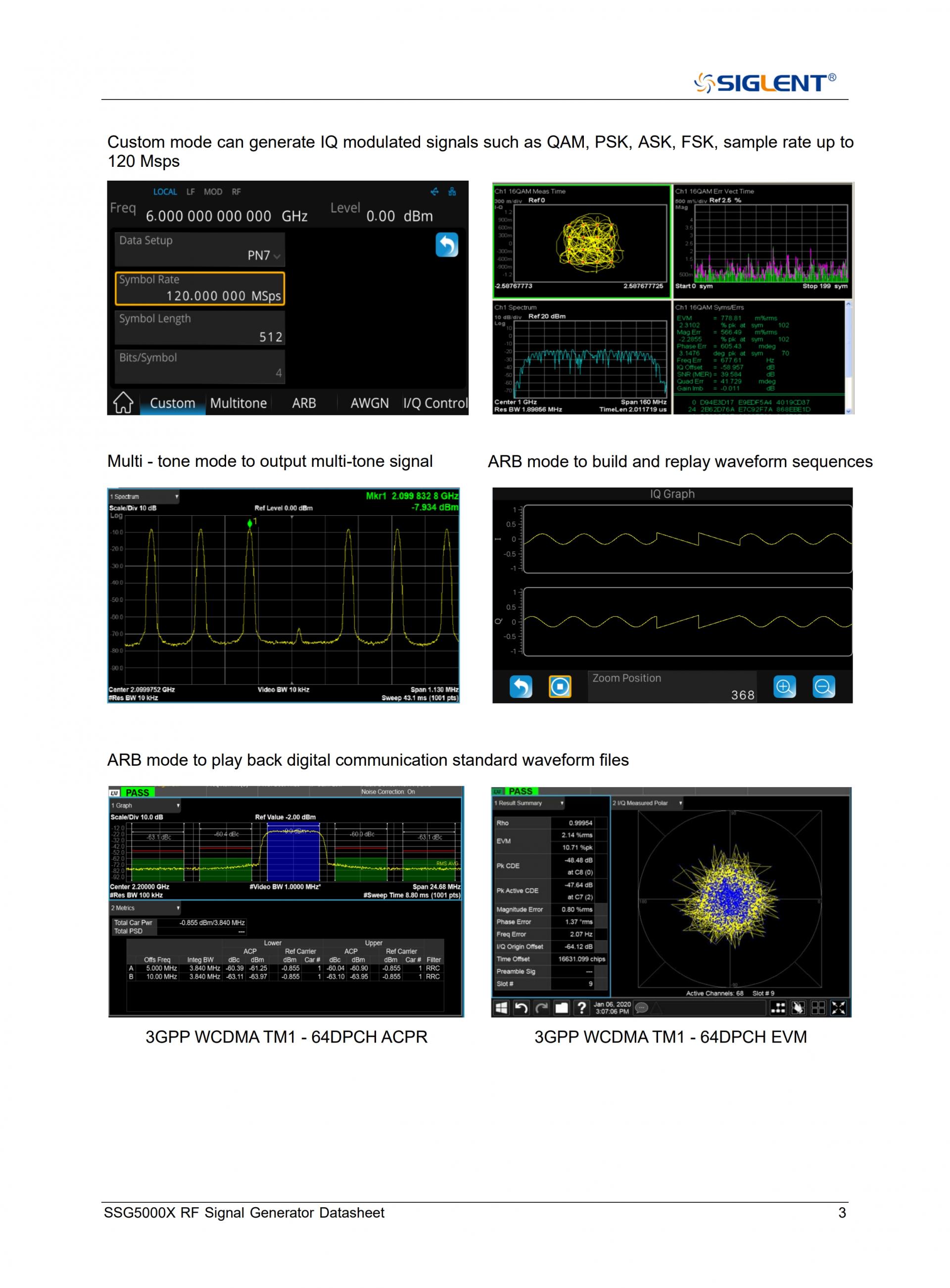 - SSG5000X-V: QAM, FSK, ASK, MSK와 같은 일반적인 IQ 신호를 생성하는 내부 사용자 정의 모드