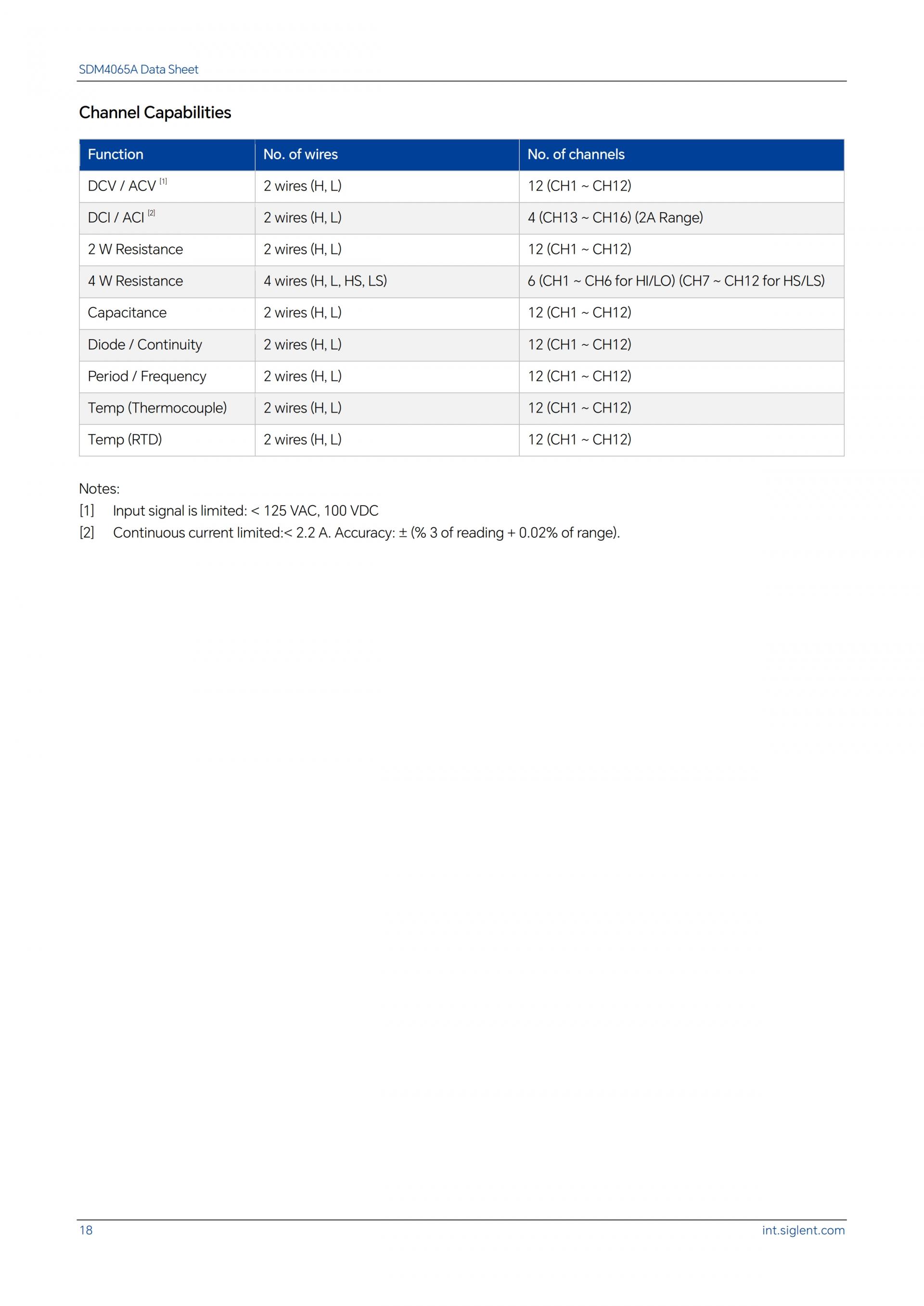 SIGLENT SDM4065A-SC에는 다점 측정 기능을 제공하는 멀티플렉서가 포함되어 있습니다. 이 스캐너는 12개의 다목적 채널과 4개의 전류 채널을 갖추고 있으며, DCV, ACV, DCI, ACI, 2WR, 4WR, CAP, FREQ, DIODE, CONT 및 TEMP(RTD 및 열전대) 측정 기능을 지원합니다. 여러 측정 지점 또는 신호가 필요한 테스트 애플리케이션에 편리하고 다재다능한 솔루션을 제공하며, R&D 번인 및 생산 테스트에 이상적인 도구입니다.