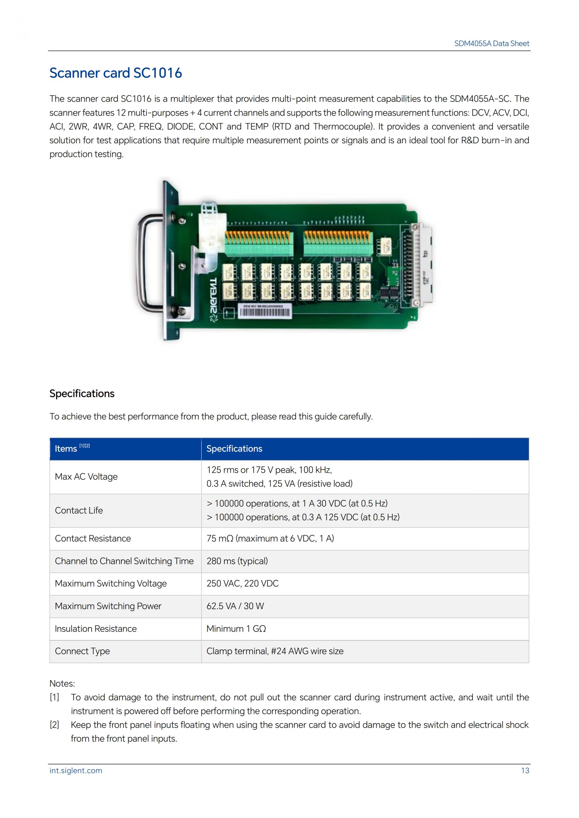 SIGLENT SDM4055A-SC에는 다점 측정 기능을 제공하는 멀티플렉서가 포함되어 있습니다. 이 스캐너는 12개의 다목적 채널과 4개의 전류 채널을 갖추고 있으며, DCV, ACV, DCI, ACI, 2WR, 4WR, CAP, FREQ, DIODE, CONT 및 TEMP(RTD 및 열전대) 측정 기능을 지원합니다. 여러 측정 지점 또는 신호가 필요한 테스트 애플리케이션에 편리하고 다재다능한 솔루션을 제공하며, R&D 번인 및 생산 테스트에 이상적인 도구입니다.