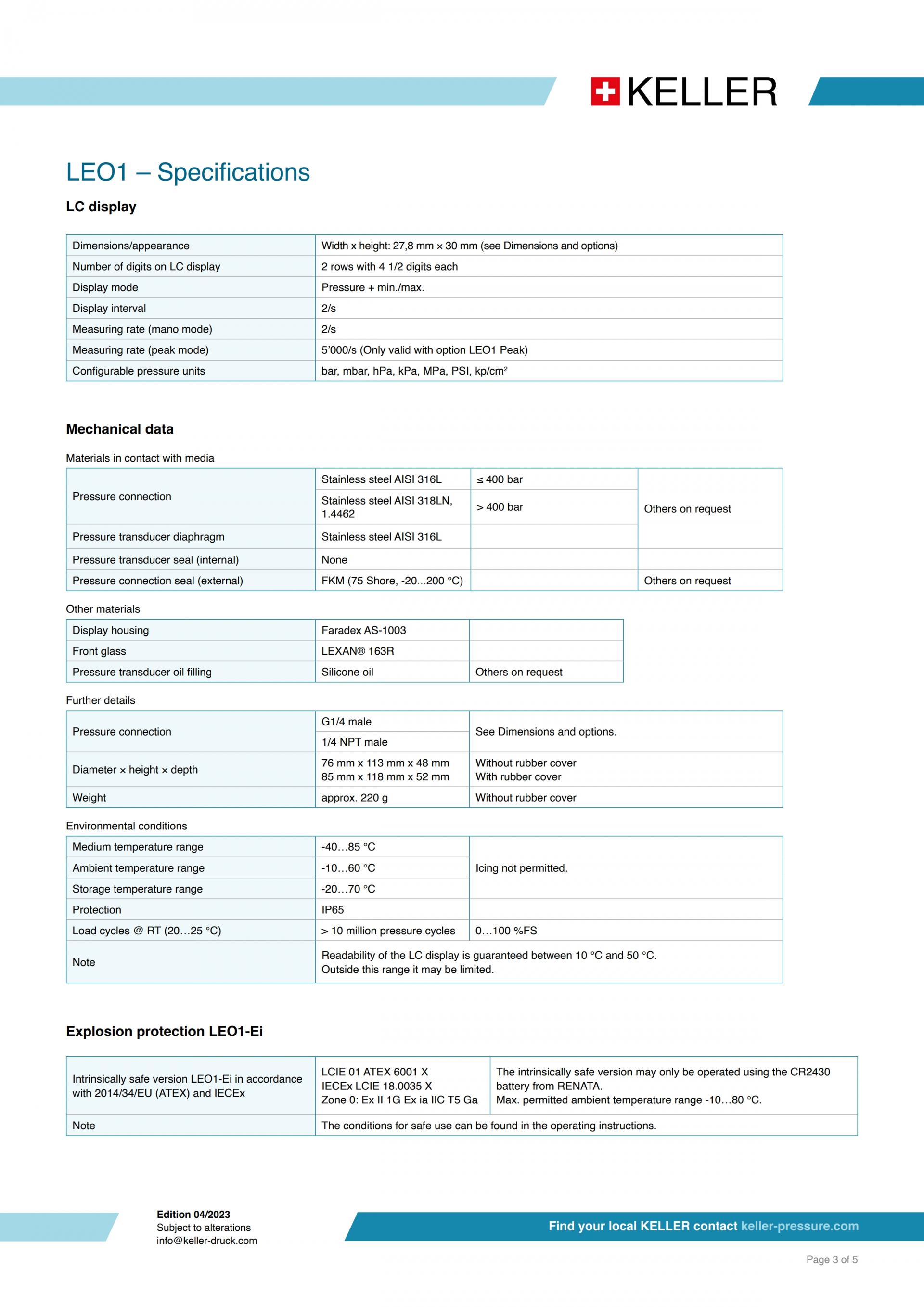 LEO1 디지털 압력계는 초당 5000 개의 개별 측정 간격을 가지고있어 빠른 압력 피크를 기록 할 수 있습니다.