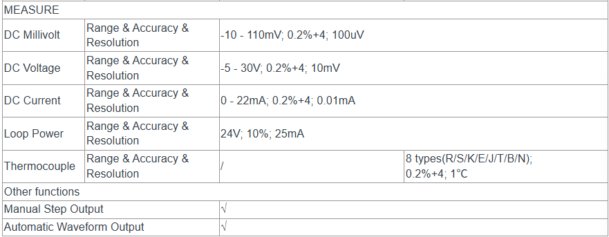 - Manual step output for V/mA value and automatic waveform output