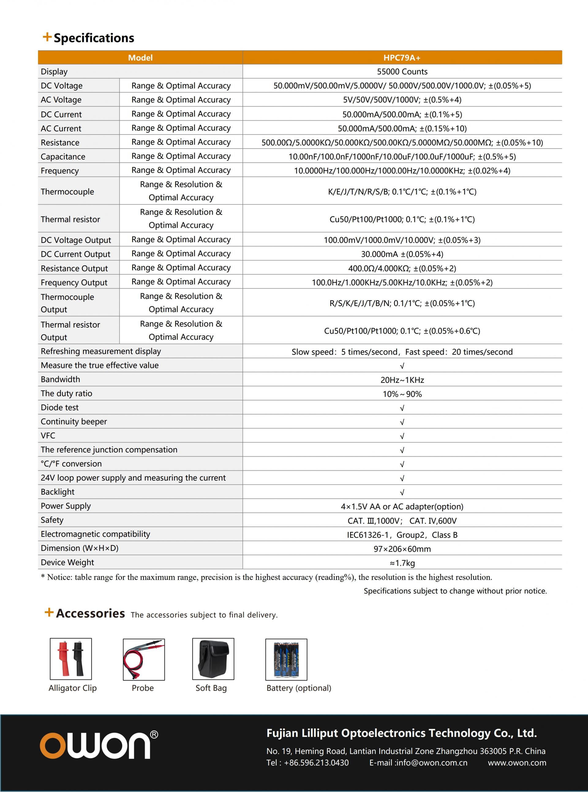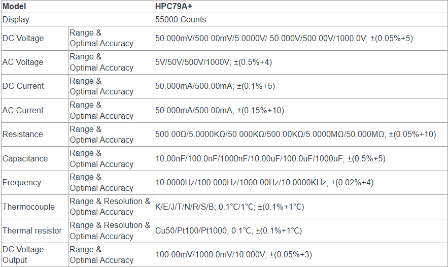 - High precision: 0.05% basic accuracy with 55,000 counts display.