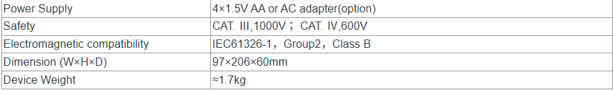 - CAT IV 600V and CAT III 1000V safety standards.