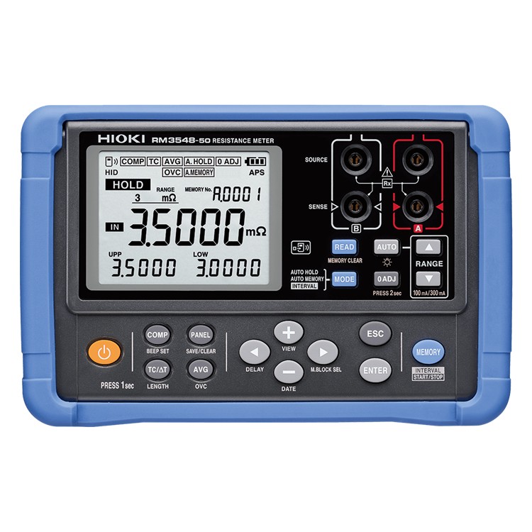 RM3548-50은 0.1µΩ부터 3.5MΩ까지 측정 가능한 휴대용 저항계입니다.