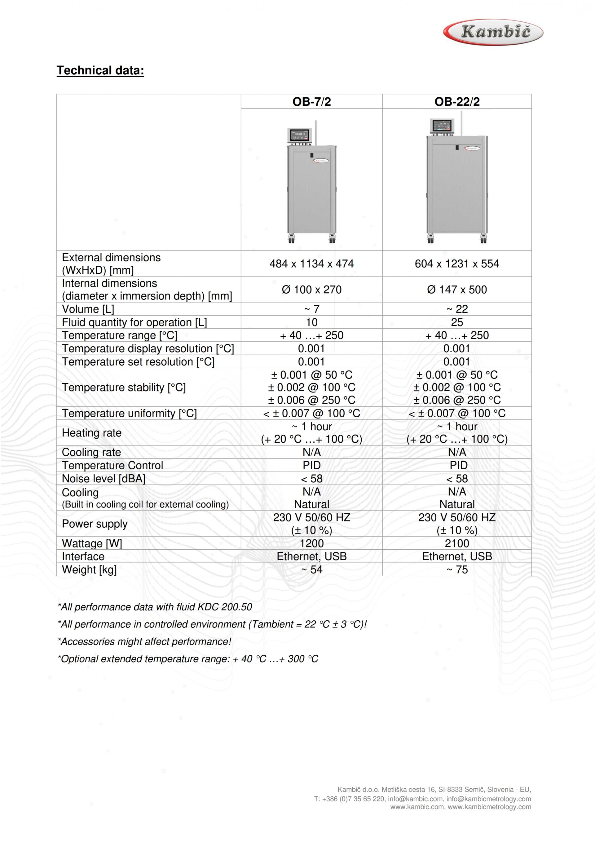 OB-7/2 , OB-22/2 , O-50/2 , OB-200/2 CALIBRATION BATHS