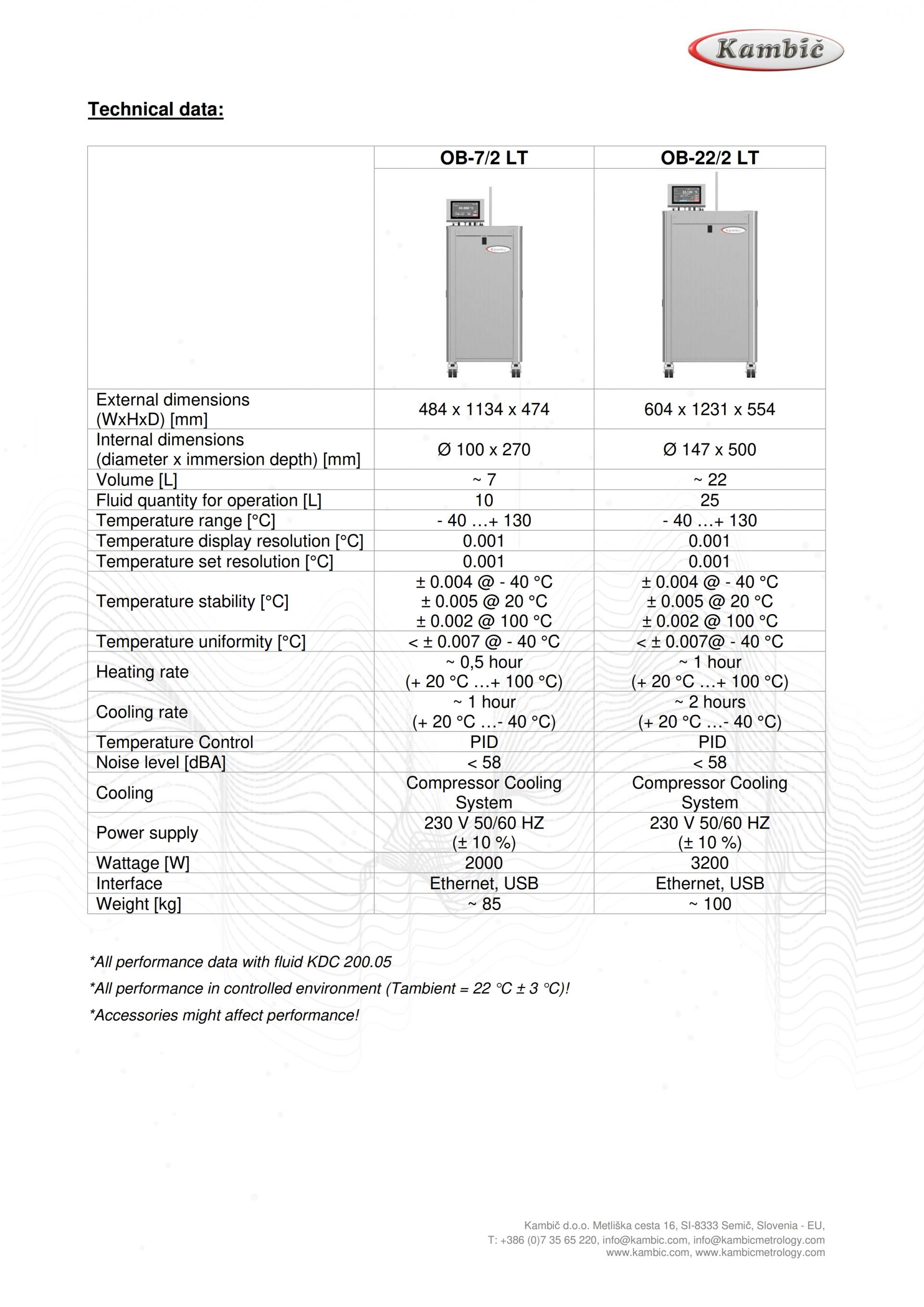 KAMBIC OB-7/2LT , OB-22/2LT , OB-50/2LT , OB-200/2LT Low temperature calibration baths