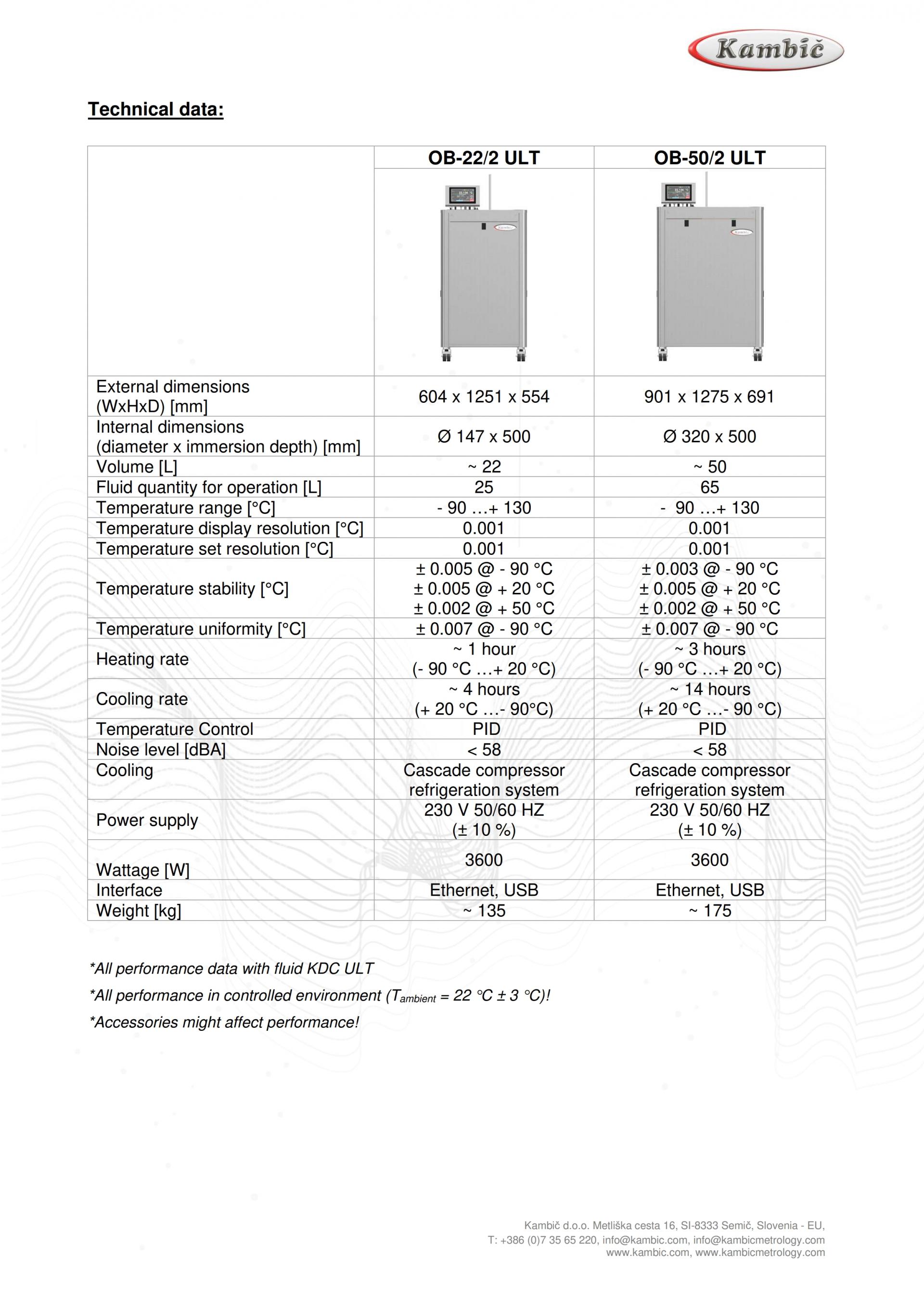 OB-22/2ULT , OB-50/2ULT , OB-200/2ULT Ultra-low temperature calibration baths