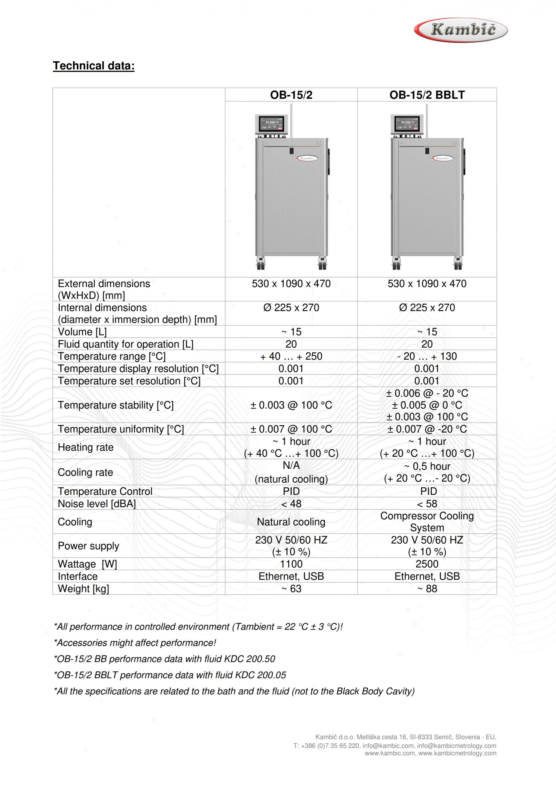 KAMBIC OB-15/2 BB Compact Size Calibration Bath