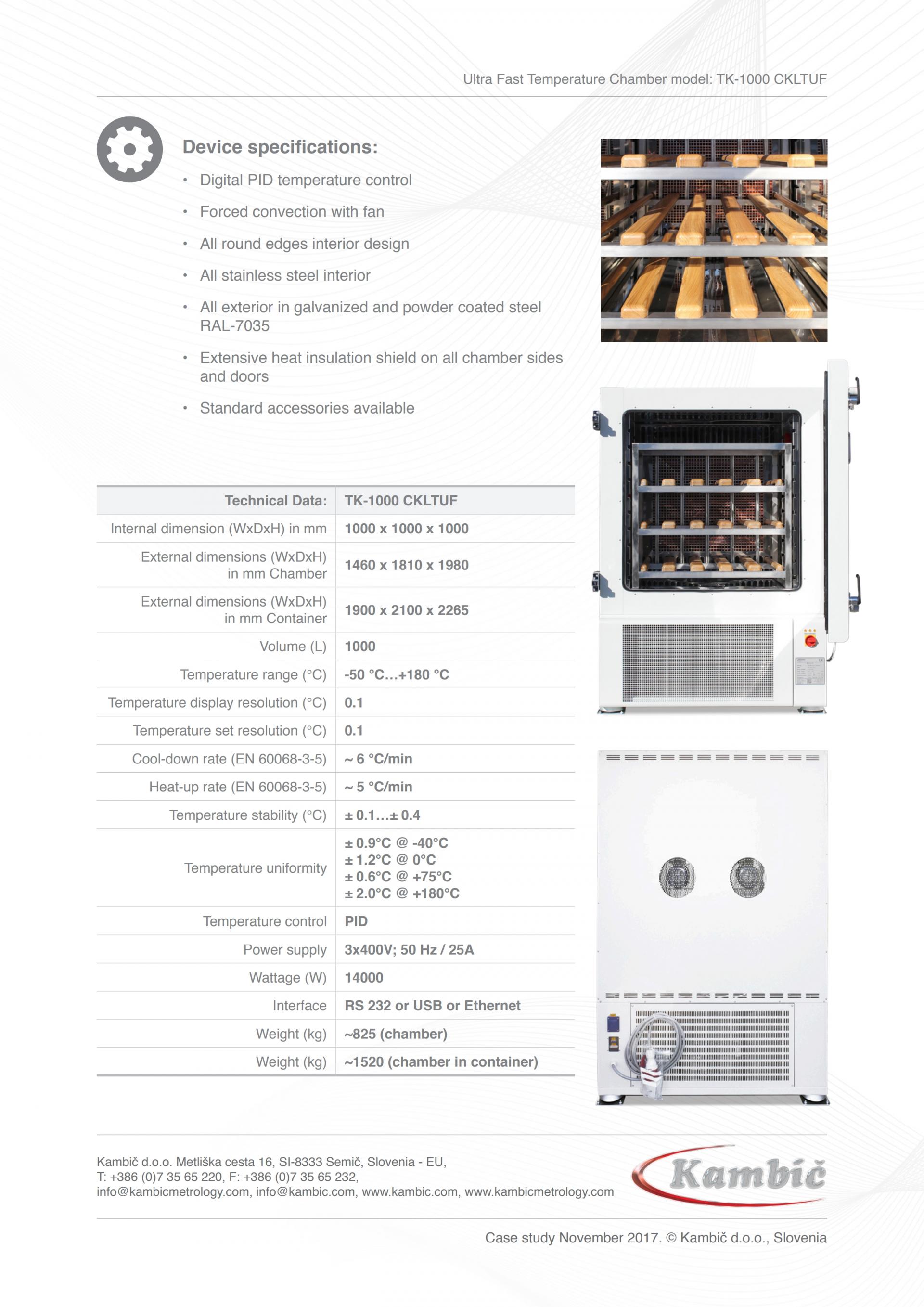 - Fast cool down rate 6°C/min (EN60068-3-5)