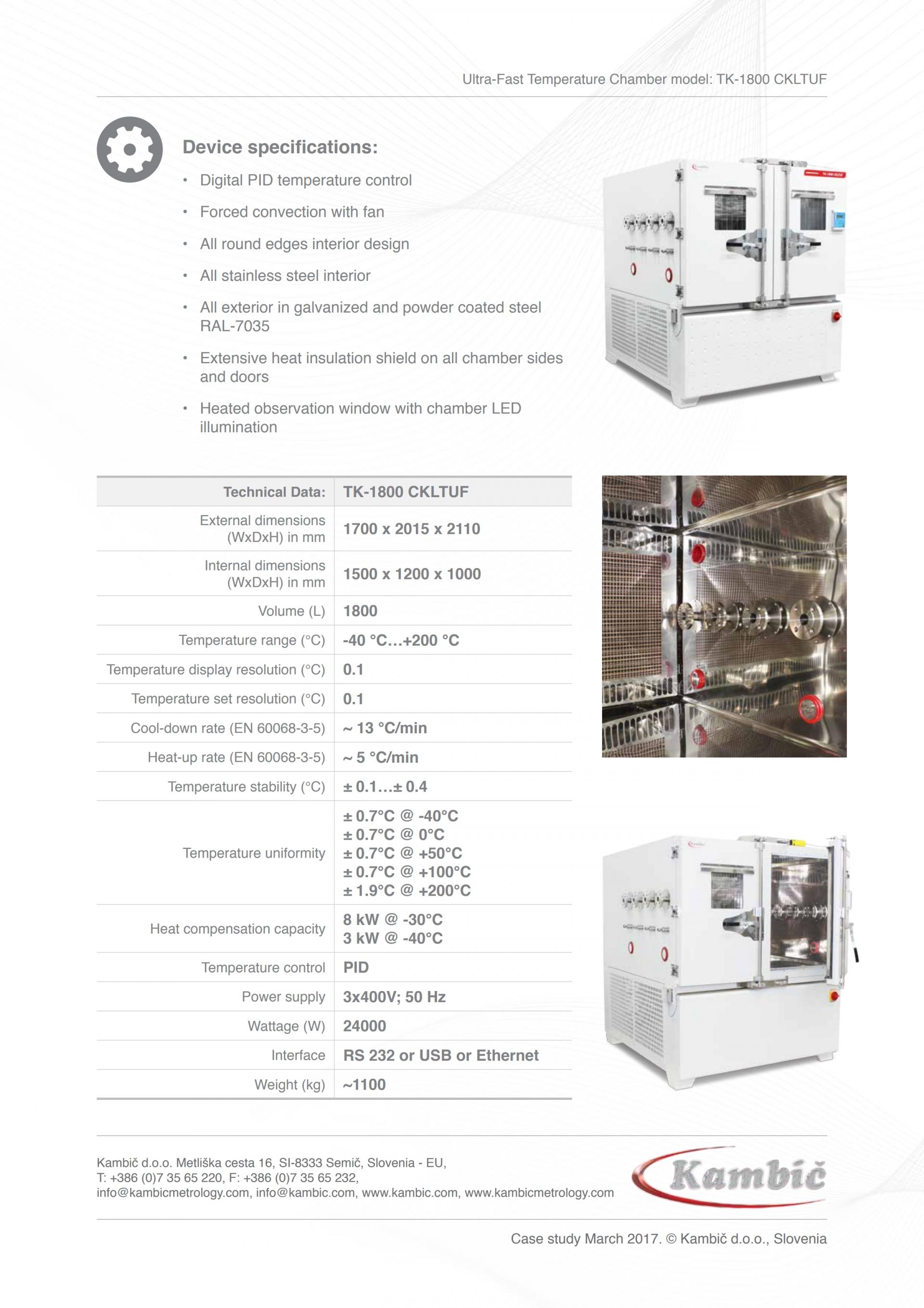 - Ultrafast cool down rate 13°C/min (EN 60068-3-5)