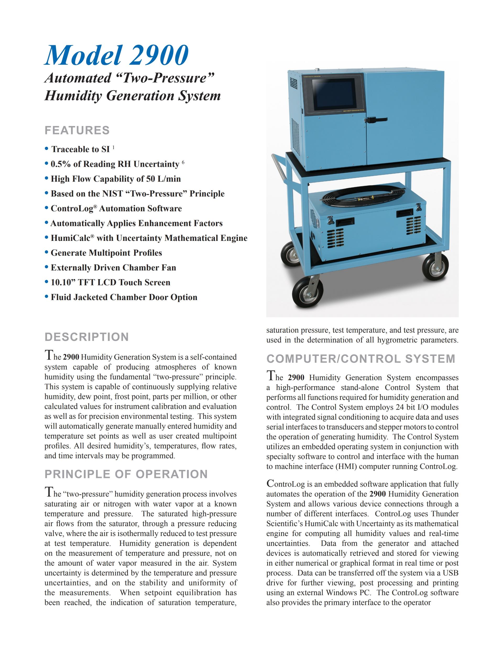 MODEL 2900 Automated ”Two-Pressure” Humidity Generation System