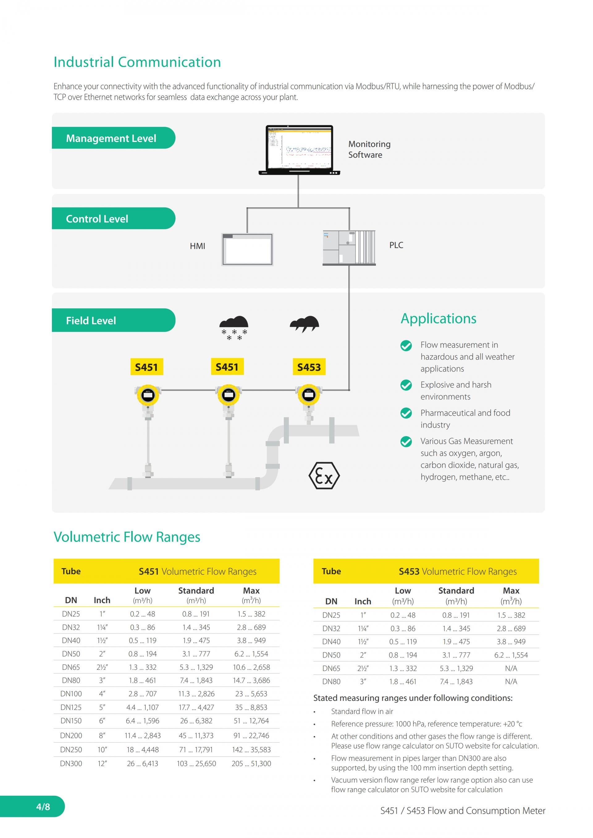 SUTO-iTEC S451 & S453 Thermal Mass Flow Meter for Heavy Duty and Ex Applications