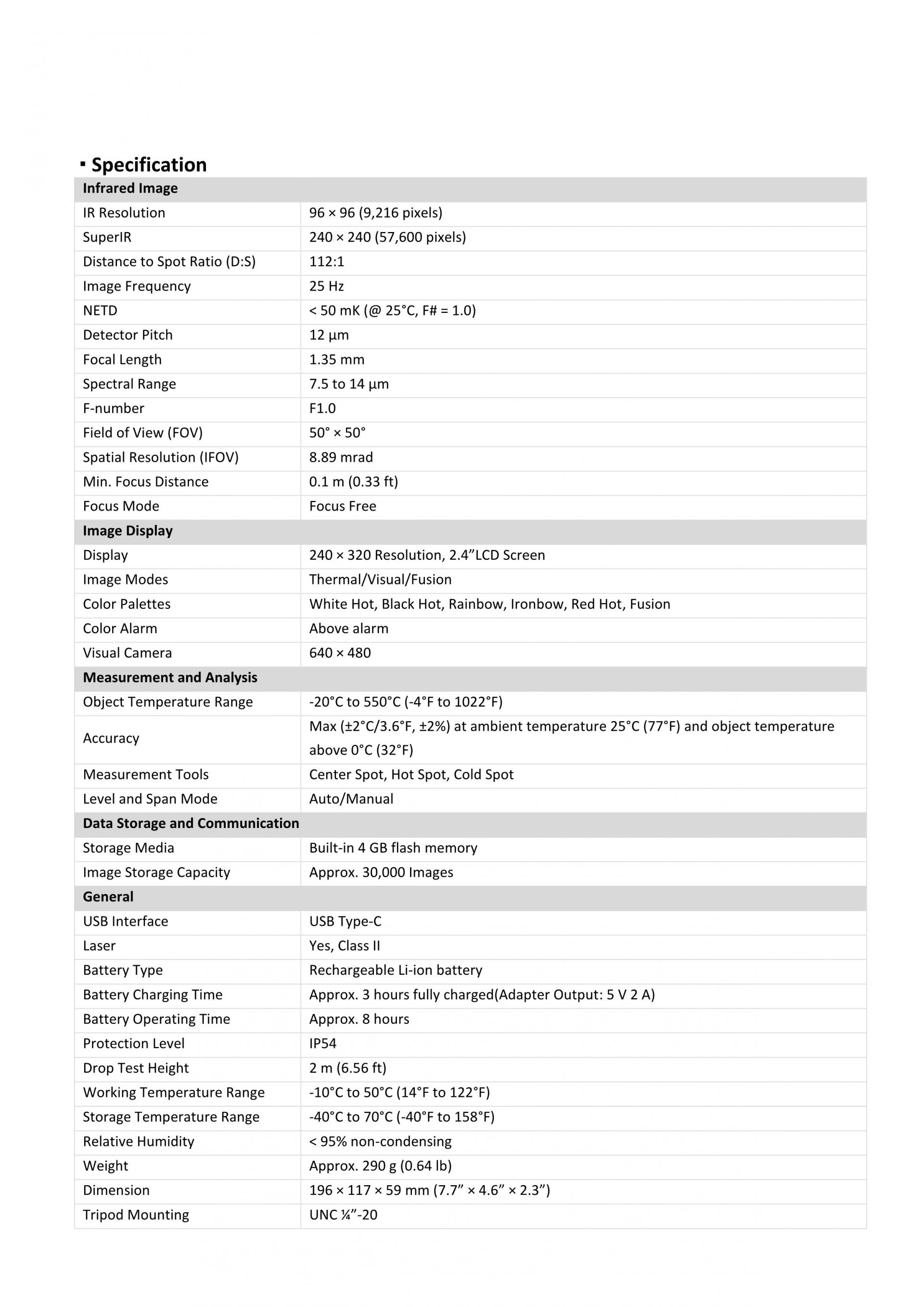 - NETD : < 50mK(@ 25°C, F# = 1.0)
