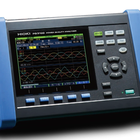 전원 품질 분석기의 사용방법 : 전력 계통의 전원 품질 기록전압, 전류, 전력, 고조파, 플리커 등 모두를 동시에 시계열로 측정. 트랜드 기록과 동시에 순시 정전, 전압 강하, 주파수 변동 등 모든 전원 이상을 포착합니다. |