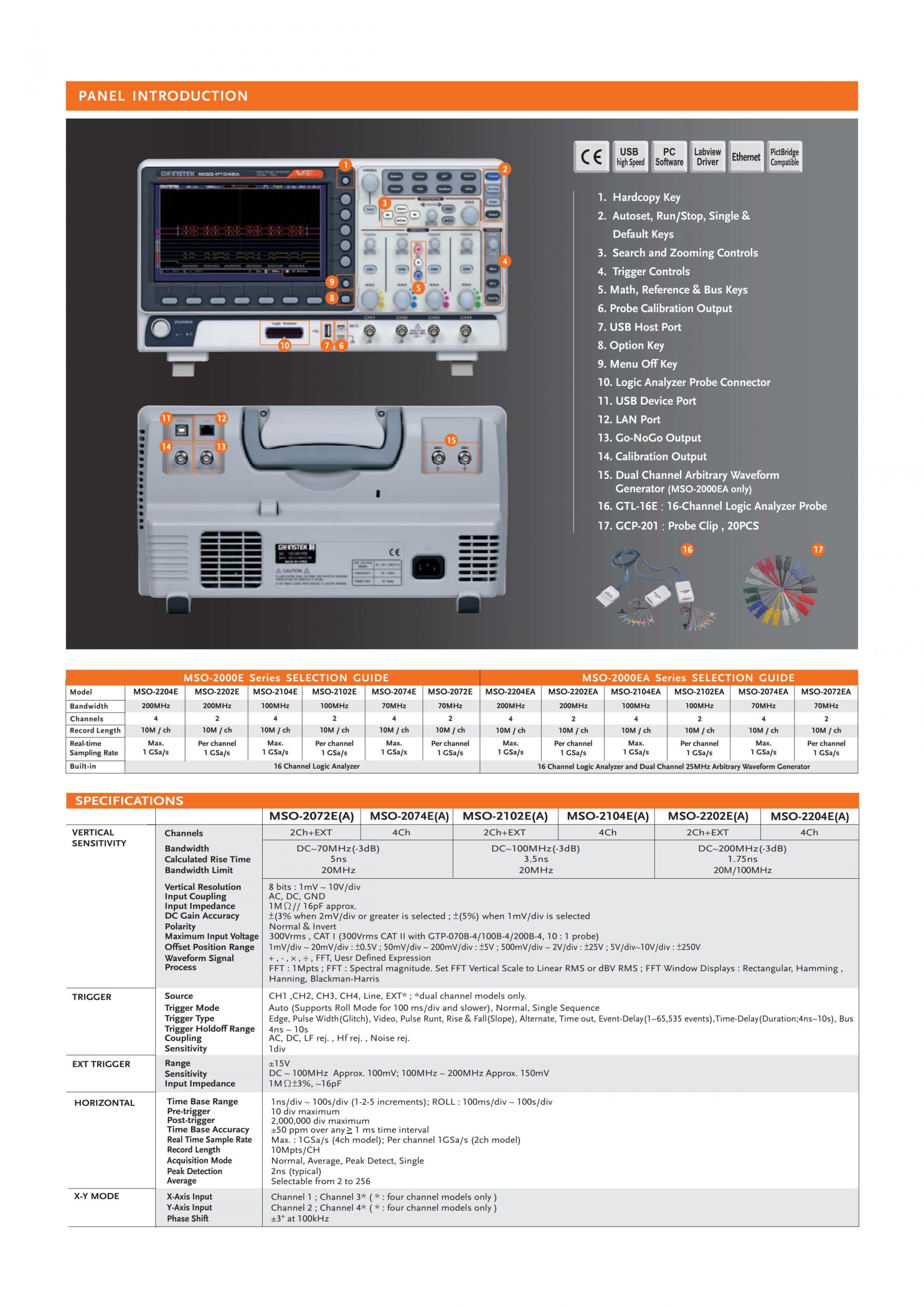 - MSO-2000E equips with a 16-channel logic analyzer